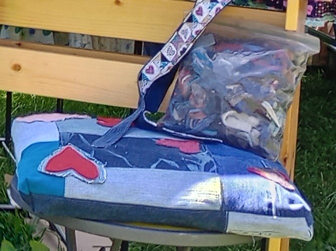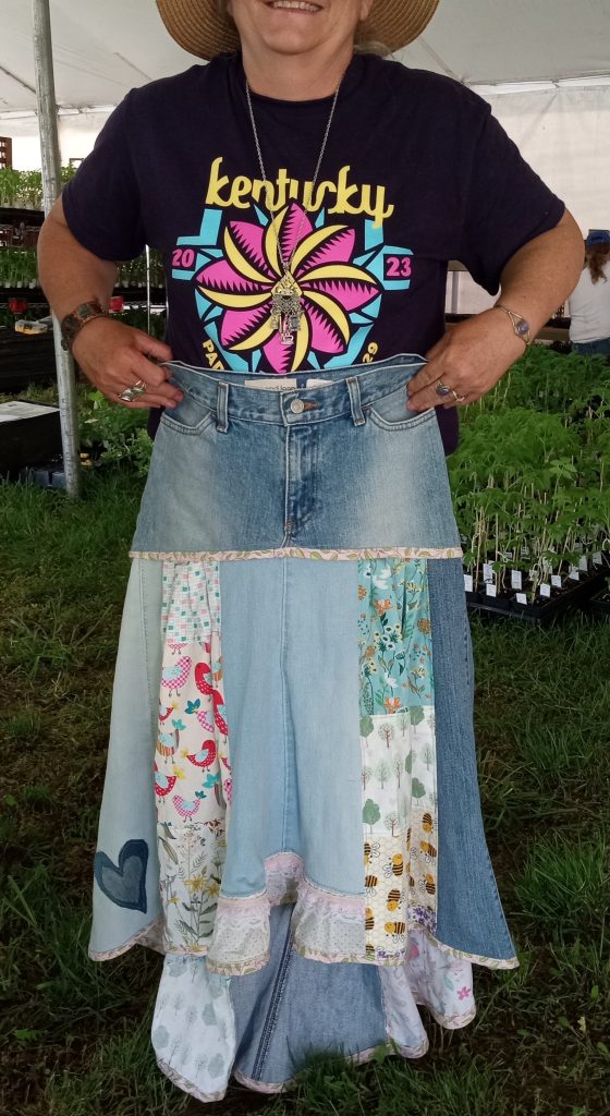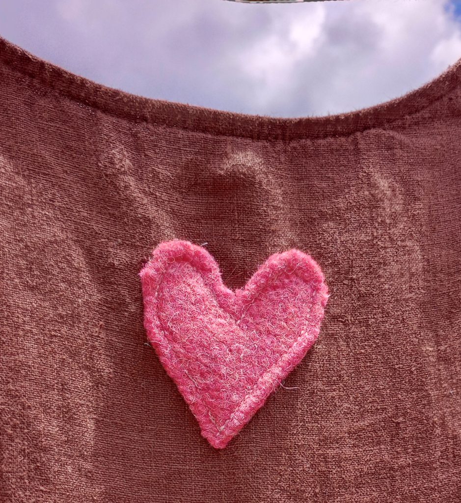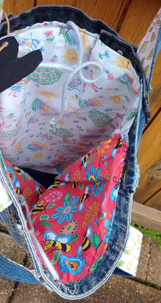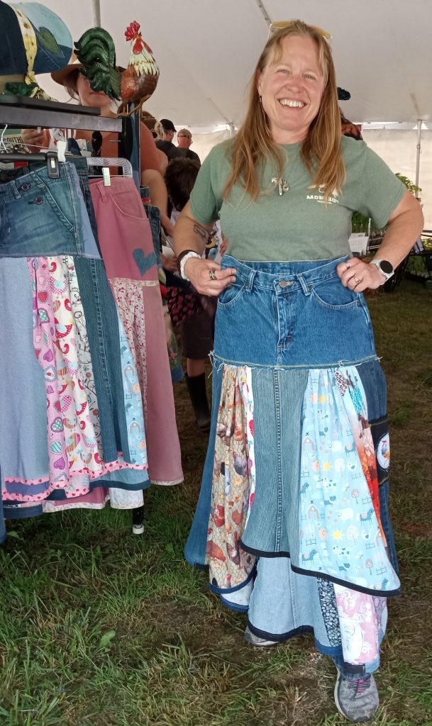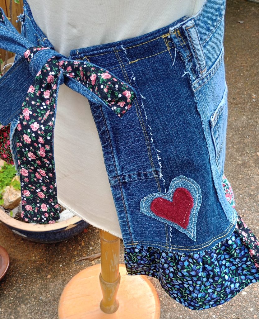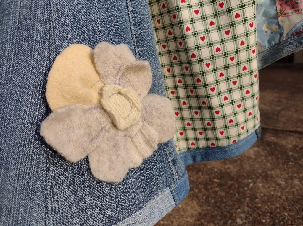 The following items for sale are one of a kind & lovingly crafted from approximately 99% repurposed denim, cotton, linen and wool. Many items were sewn using solar power.