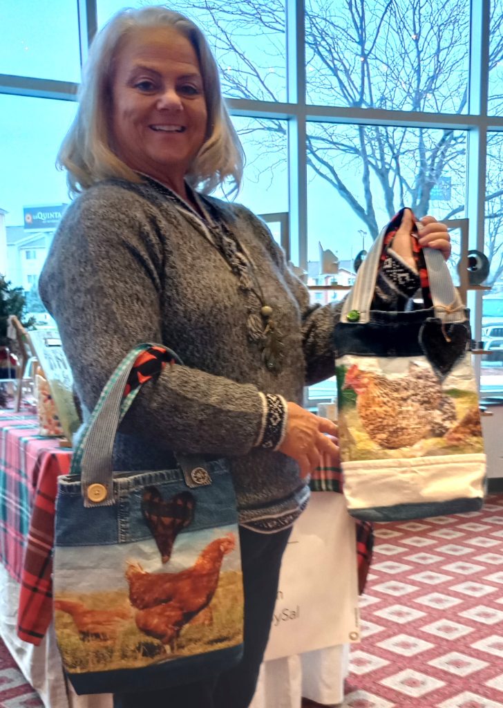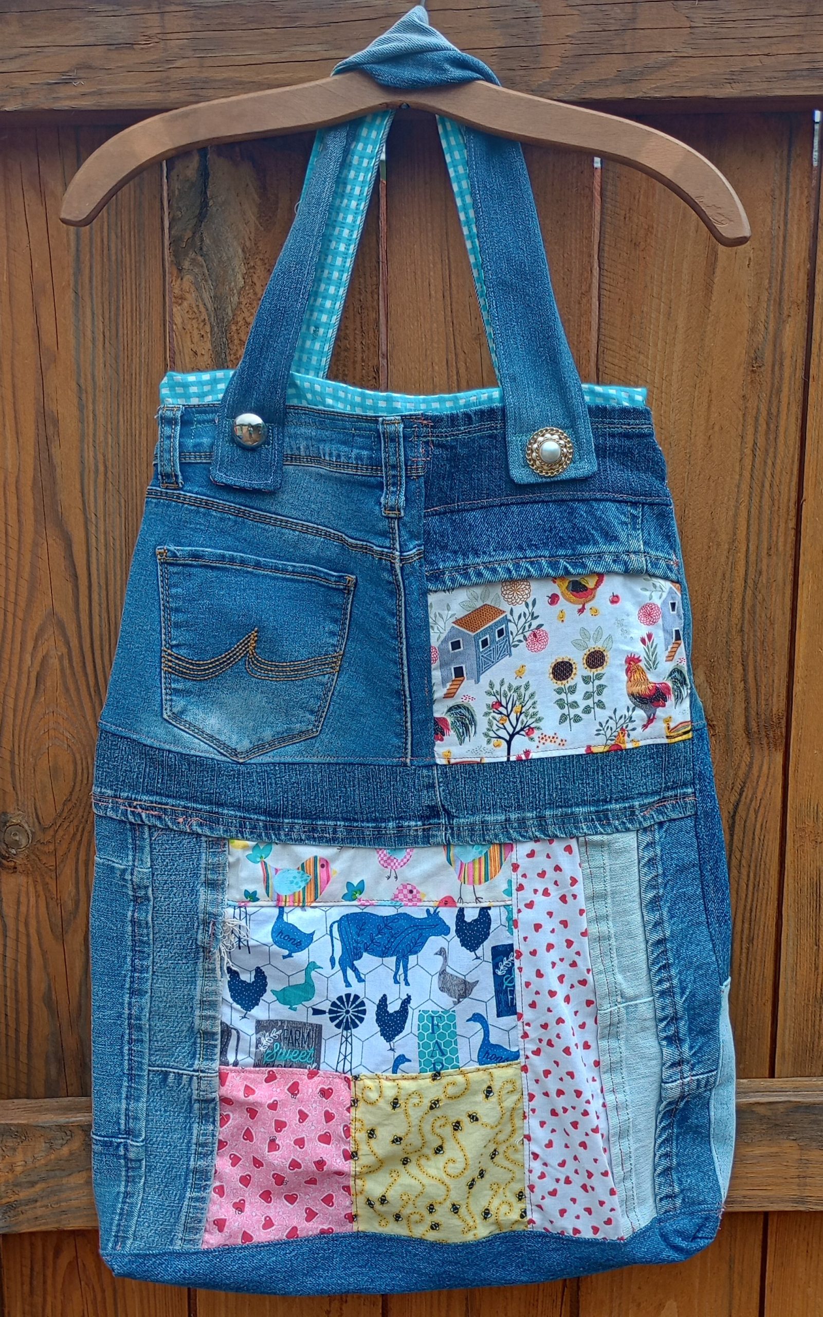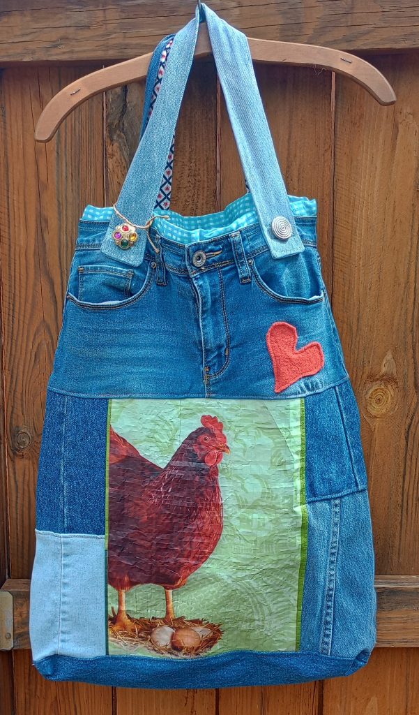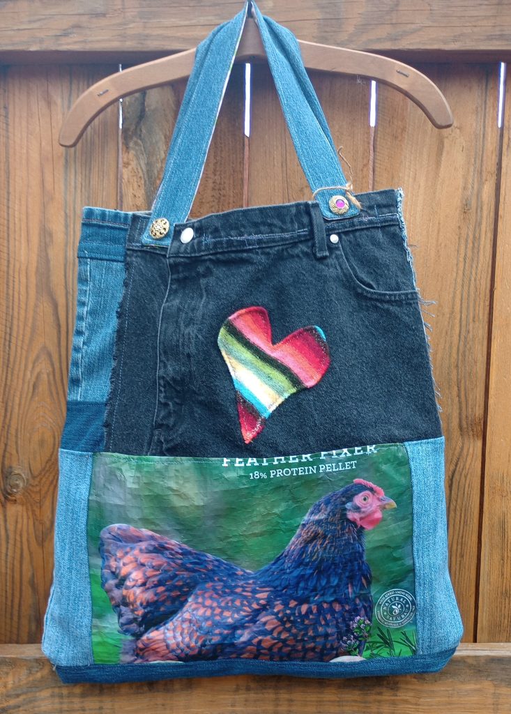 Super sized, super sturdy & super cute! Repurposed denim, cotton, buttons, wool & chicken feed bags. Fully lined.