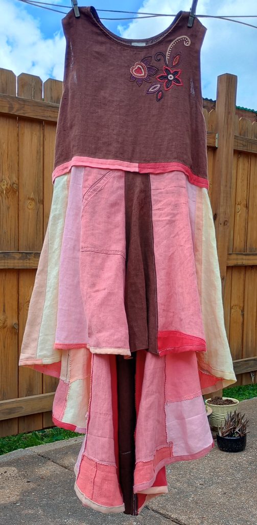 Artfully constructed from repurposed linen and cotton. Ladies size M/L. Please contact me regarding exact measurements.
