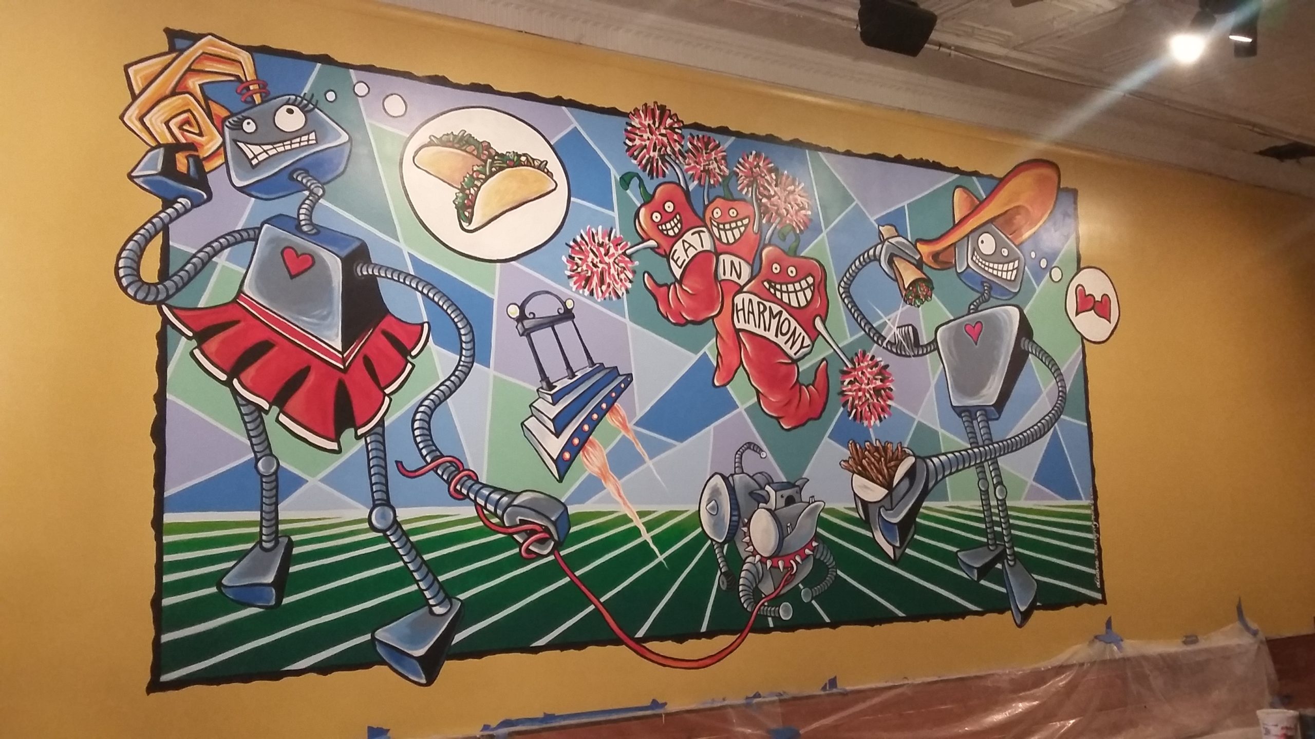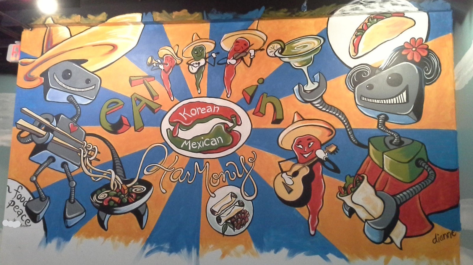 Mexican and Korean Fusion Restaurant Mural, Atlanta GA. 12′ x 7′