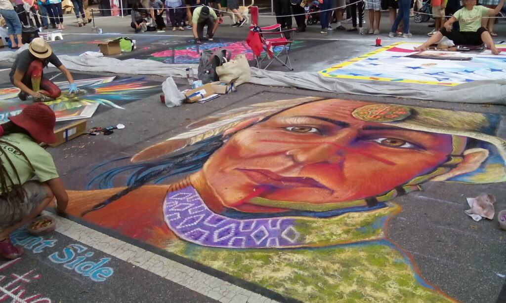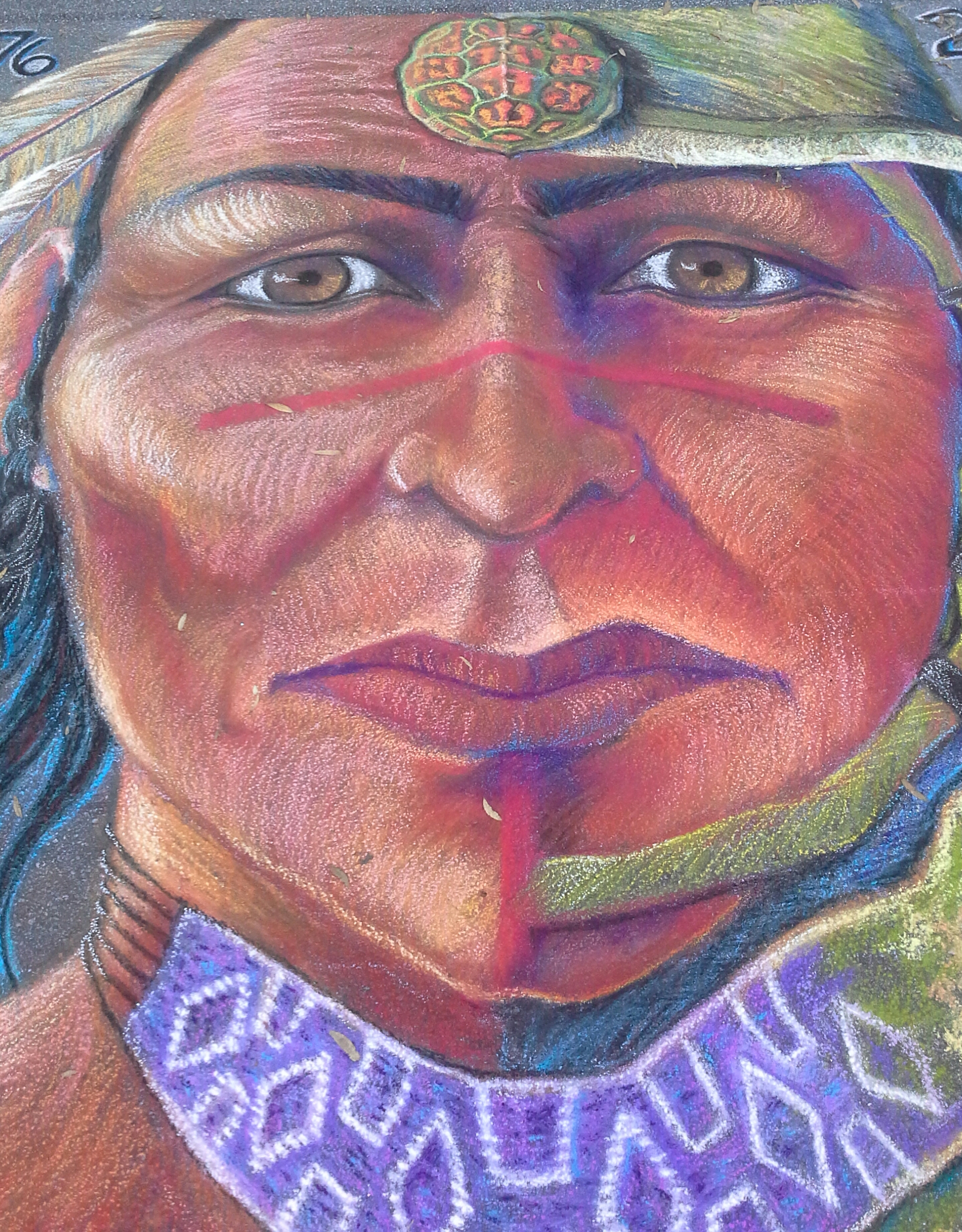 Featured Artist at Chalk Festival Marietta GA. Patriotism Theme. Title, “Native Patriot”, 12′ x 12′