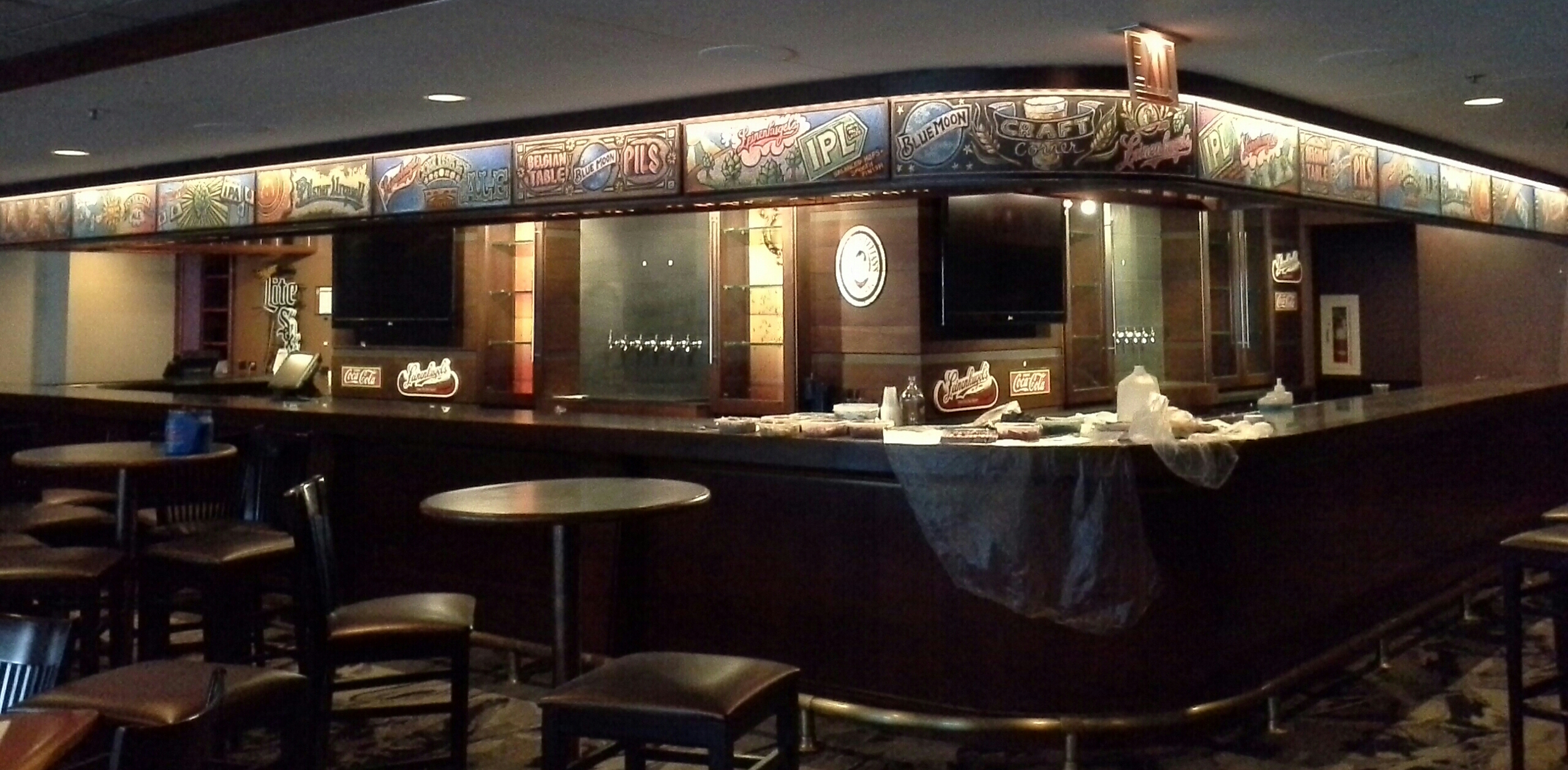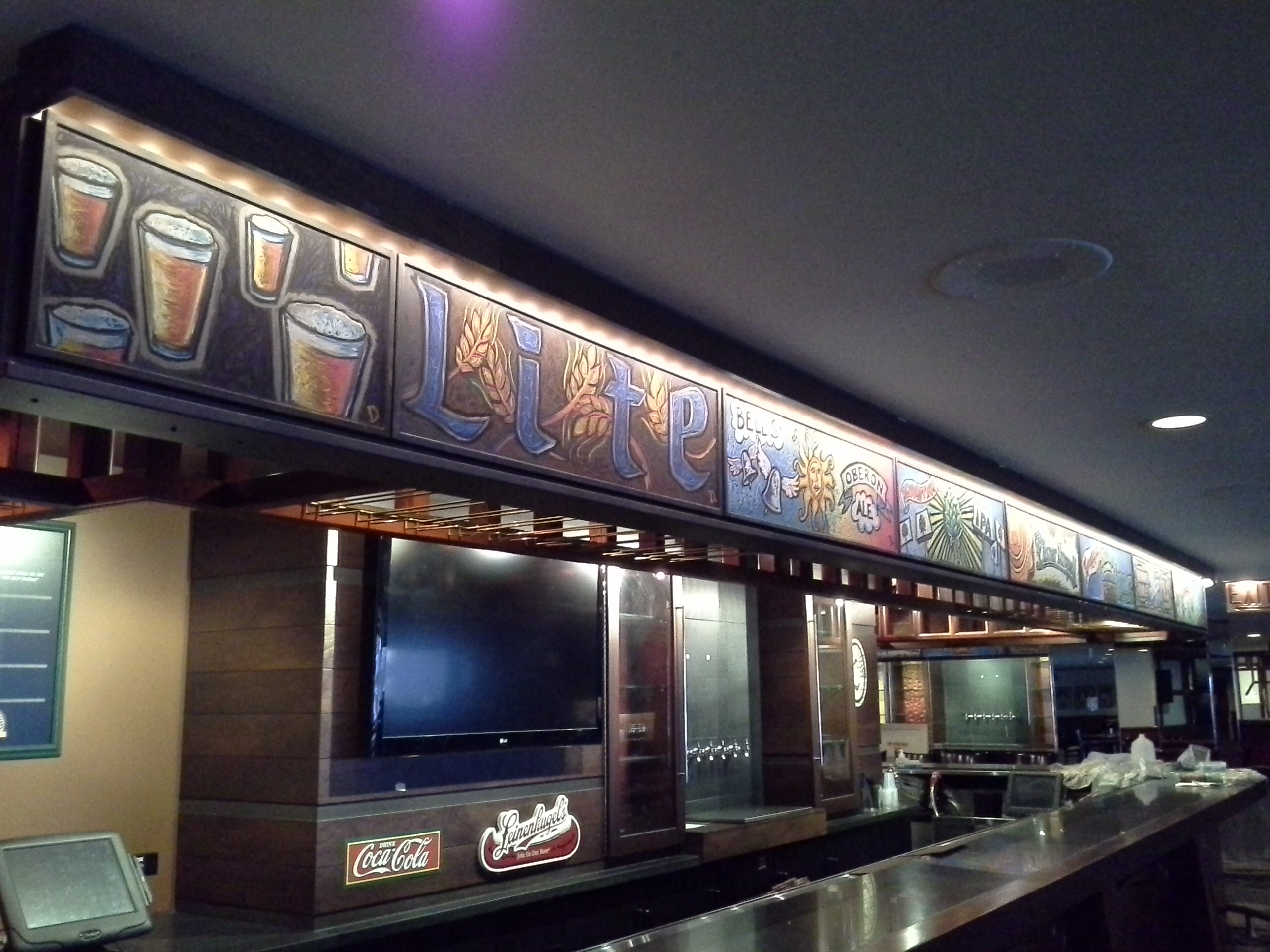 Chalk Murals for Chicago White Sox Bar and Grill. Entire front of bar, 15 panels total.
