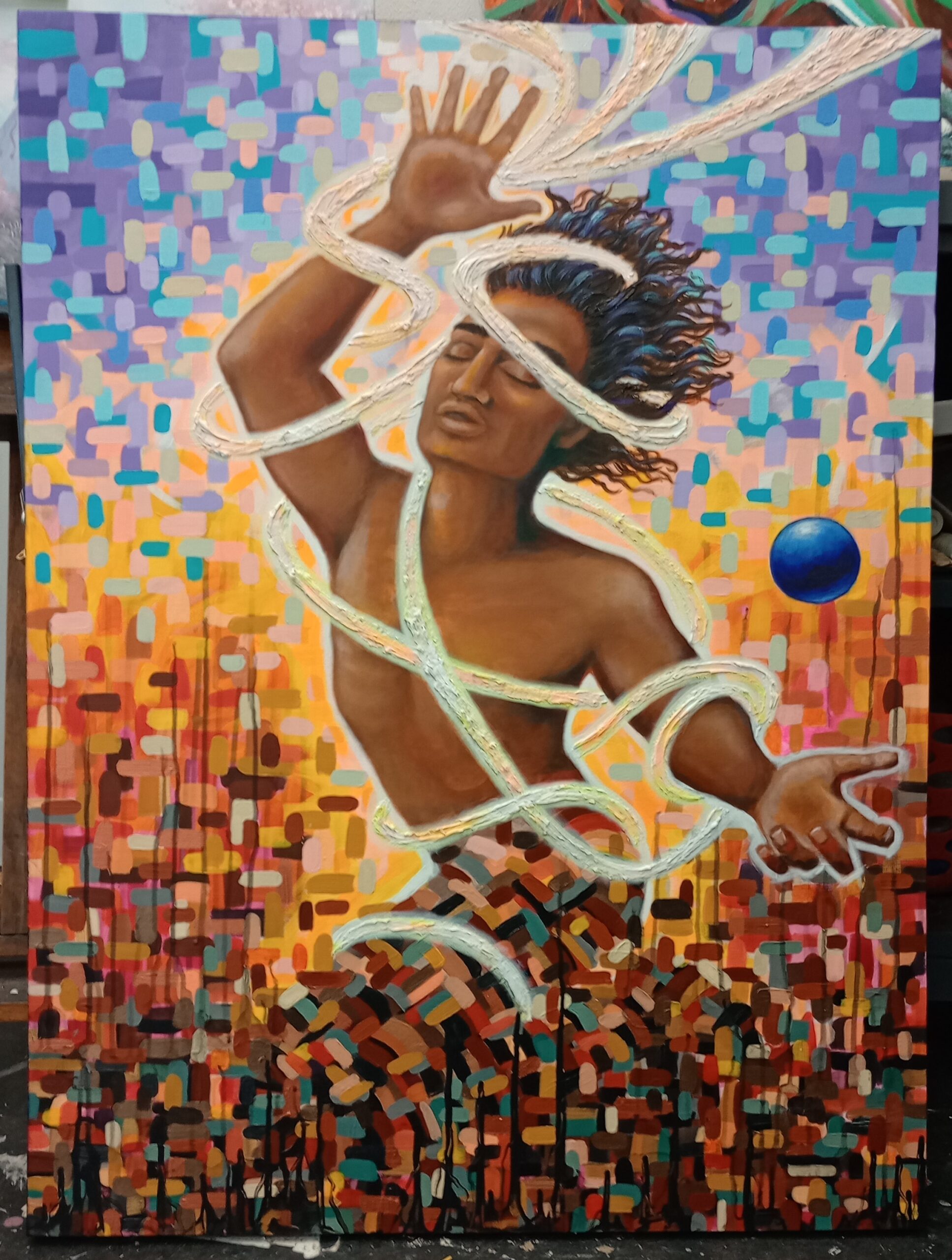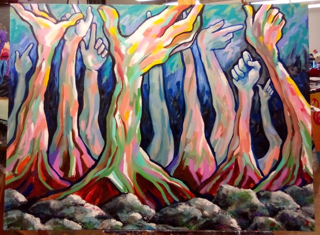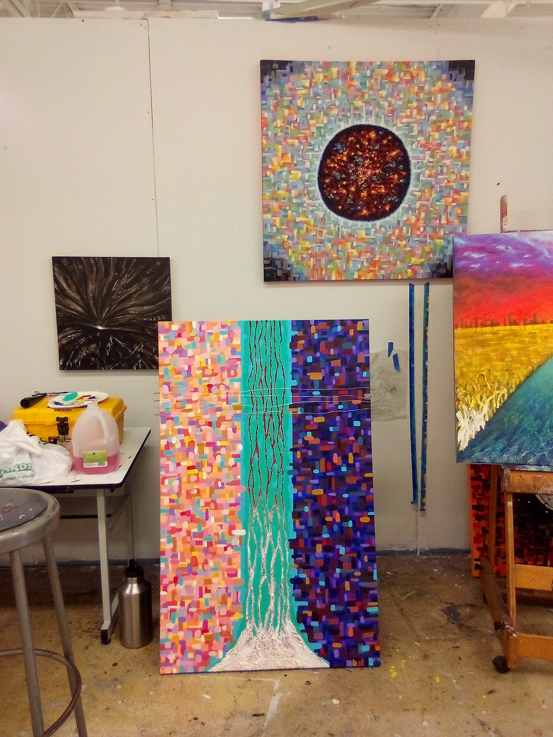 One of my earliest art obsessions was with Mexican muralists. The narrative and bold use of color really resonates with me. With my personal work, I hope to continuously move forward in maturing childlikeness, with visual statements that communicate love, light and hope.
