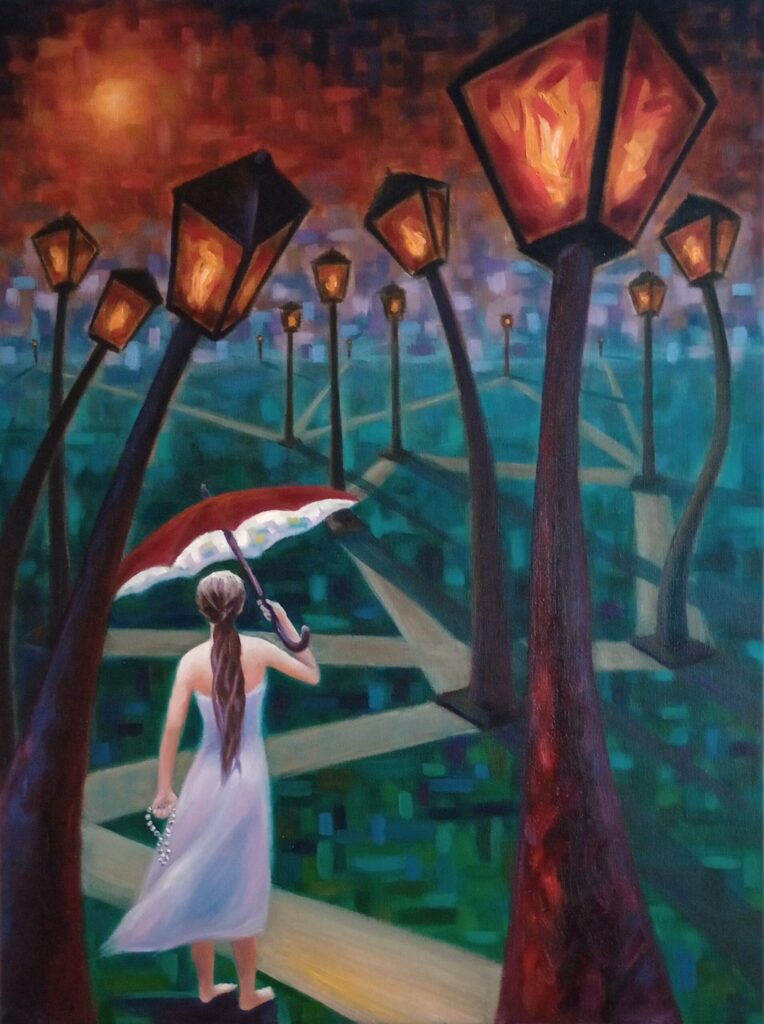 Some words used to describe my work have been bold, playful, liminal, whimsical, storybook-like, light-hearted and illustrative.
